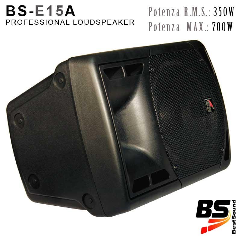 Componenti: La BS-E15A adotta, come woofer, un altoparlante a cono da 15" di elevata potenza con cestello in alluminio. La sezione medio-alti è costituito da un driver a compressione da 1,75" dotato di una tromba a direttività costante, realizzata nel mobile,con dispersione 90°x60°