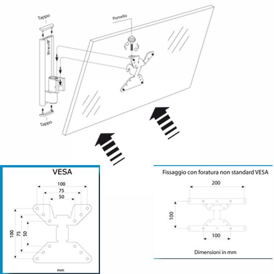 - STAFFA TV BRAVO LCD1 PER TV LCD 10"-30" ATTACCO VESA 7,5x7,5, e 10x10 cm SILVER