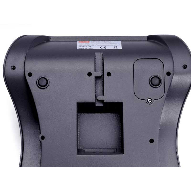 Spegnimento a tempo programmabile Configurazione e programmazione Configurazione e programmazione anche da PC Tipologia stampante Stampante termica easyloading ad alta risoluzione (200 dpi) da 24 caratteri Giornale di Fondo Elettronico (DGFE) su SD card Tastiera 40 tasti legendabile e programmabile anche da PC Alimentazione Alimentazione a 12-24V da batteria e da rete con adattatore esterno Display LCD 1 riga x 16 caratteri di colore Blu con retroilluminazione Connettività Porta seriale RS232 per collegamento a PC/Scanner Larghezza (cm) 23 Altezza (cm) 10 Profondità (cm) 30 Peso (kg) 1,5