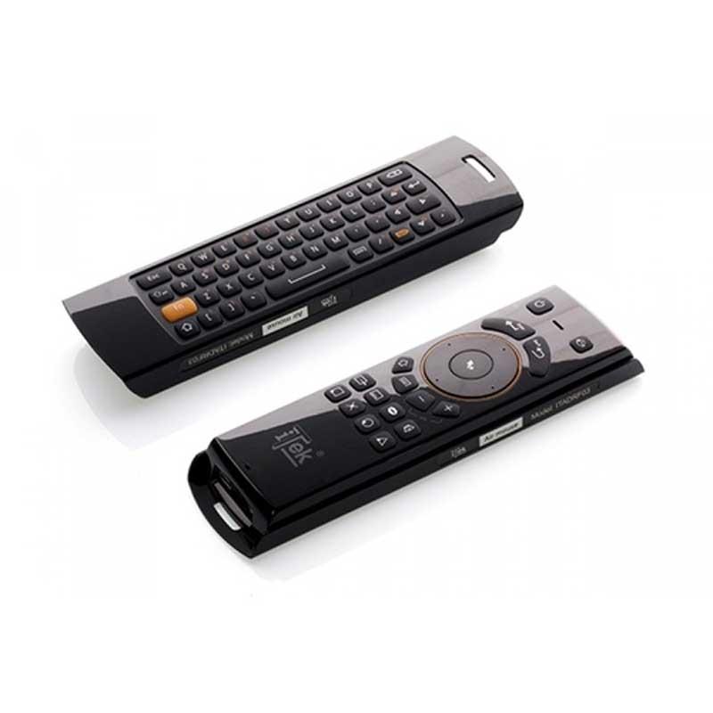 iTek presenta il rivoluzionario Air Mouse 3 in 1. Questo dispositivo è davvero unico nel suo genere perché racchiude 3 prodotti in uno. ITADRF03 infatti è una tastiera “querty”, un mouse e un telecomando. Può essere usato su Computer, TV e Media Player grazie alla connessione wireless 2.4GHz con dongle in dotazione. Le dimensioni ridotte e la sua praticità lo rendono un “must” nel vostro centro multimediale domestico, o se volete fare davvero colpo alla prossima riunione di lavoro. Composto di plastica nera lucida di buona fattura, da un lato è composto da una tastiera qwerty di ottima fattura con tasti ben distanziati tra loro, adatti anche a chi ha dita grandi. Il tasto arancione Fn, ben visibile, è utile per usare le funzioni aggiuntive che si trovano sulla tastiera e che sono evidenziate di arancione in alto a destra. L'altro lato invece, troviamo una serie di tasti utili per accedere alle funzioni collegate al dispositivo, come il televisore oppure ad un media player. Anche qui i tasti sono di ottima fattura. In alto troveremo una finestra semitrasparente dove si intravede il led per la comunicazione, mentre in basso abbiamo la micro usb per la ricarica. Sul fianco sinistro troveremo un led rosso che si illumina ad ogni tasto per l'avvenuta conferma. (escluso quando utilizziamo la qwerty)