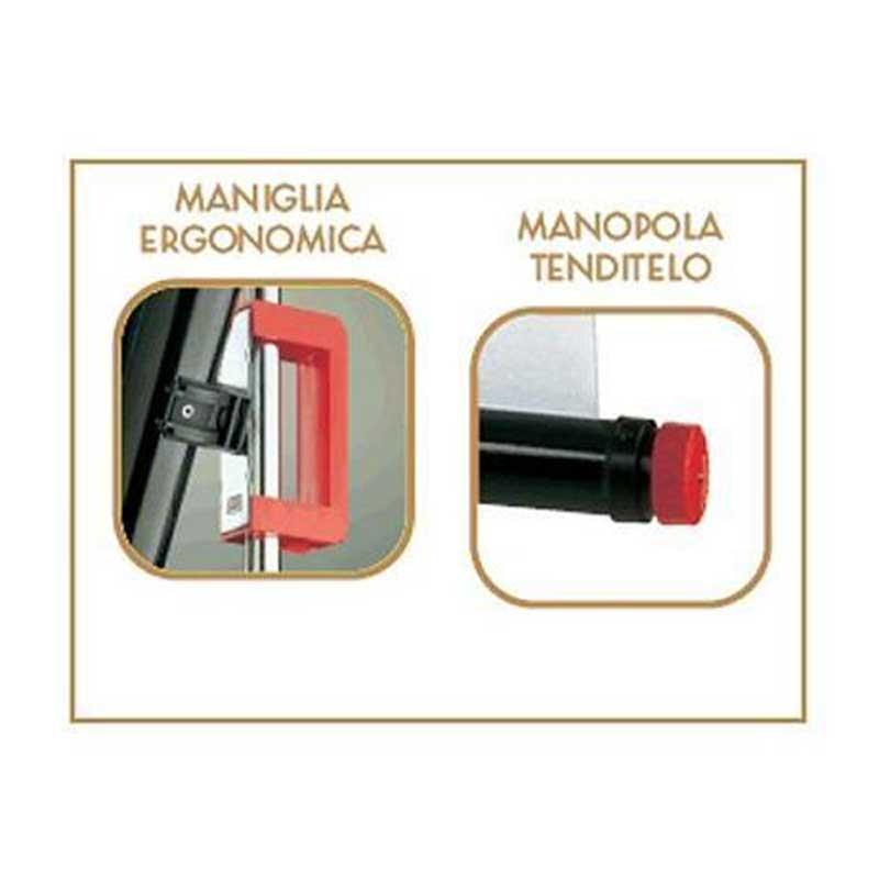 Gli schermi a Cavalletto Sopar, sono dotati di tela bianca lenticolare e sono apprezzati per l’alta qualità e per la semplicità del design. Particolare molto apprezzato è la maniglia rivestita in plastica che consente una presa ottimale durante il trasporto e le operazioni di montaggio e smontaggio.