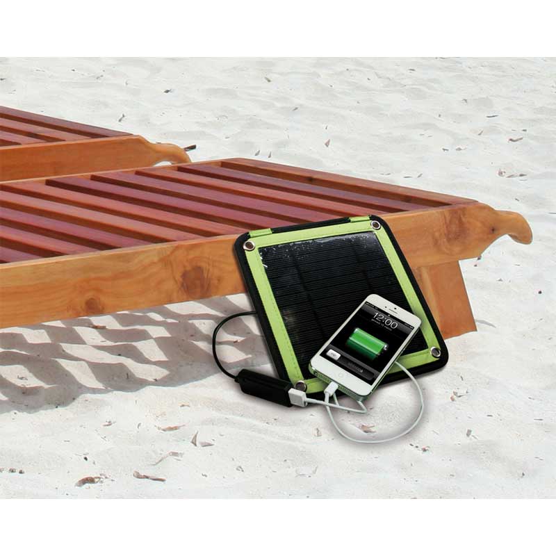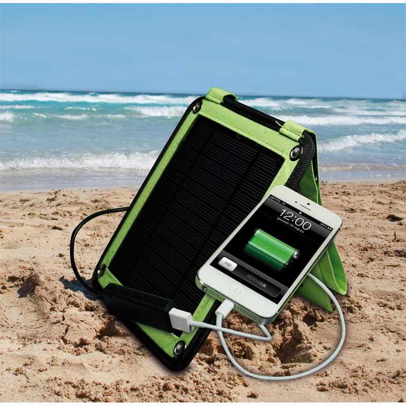 Solar Charger è un caricabatteria che utilizza un pannello solare, sottile, leggero e agevole da trasportare, creato per chi necessita di ricaricare il proprio dispositivo (iPhone®, iPod®, Smartphones e alcuni Tablet) in totale assenza di corrente, all’aperto grazie all‘esposizione diretta dei raggi solari. E’ Ideale sulla spiaggia, in barca, in montagna e durante vacanze all’aperto. Facile da agganciare ad uno zaino, ad una borsa o semplicemente da esporre tramite i propri supporti o al cavalletto nella luce diretta del sole, non dispone di alcuna batteria o accumulatore interno. Grazie al suo smart chip, dispone di una esclusiva funzione di attivazione automatica controllata dal software. Durante condizioni di tempo coperto (senza raggi solari diretti) l’energia solare non è operativa ma appena i livelli dei raggi solari diventano sufficienti per la produzione di energia, la ricarica viene ripristinata grazie al software, senza bisogno di ricollegare i dispositivi al pannello solare. Solar Charger eroga 5V tramite connettore USB con un massimo 460mAh/ora (a seconda della intensità del sole) permettendo di ricaricare tutti i modelli di iPhone®, Smartphones, lettori MP3 ed alcuni tablet (con limitato assorbimento). Solar Charger è un dispositivo Green Energy. Grazie al suo pannello solare ed alla assenza assoluta di batterie è un prodotto totalmente eco solidale nel rispetto dell’ambiente e della natura.