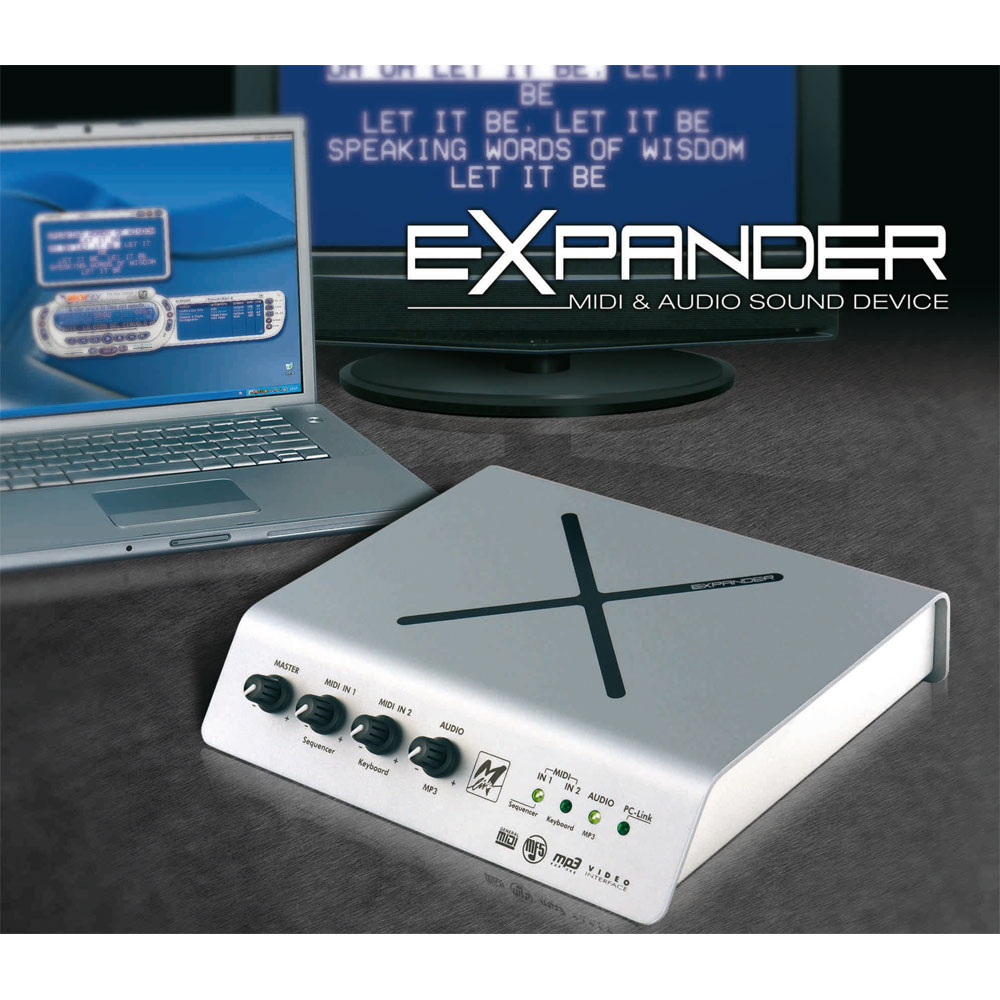 EXPANDER possiede 3 ingressi Midi, e due banchi da 16 Tracce separati. Con la sua interfaccia video permette di sdoppiare l'uscita del Computer e mostrare i testi delle canzoni sullo schermo TV senza visualizzare le schermate del PC. Puoi Mixare due sequenze Midi tra di loro, unitamente alla traccia Audio. Anche il testo della Song viene mixato tra un file e l'altro in sincronismo alla musica.