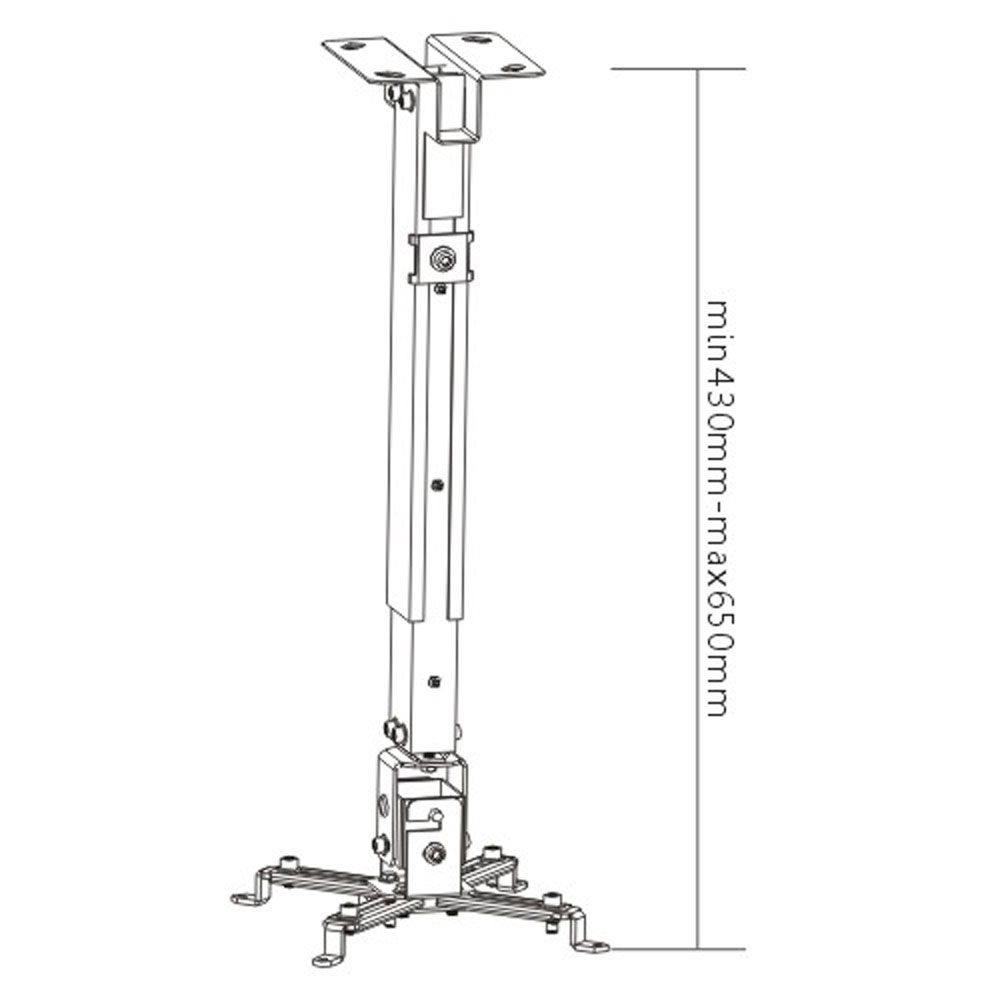 - Supporto universale per videoproiettore - Possibilità di fissarlo su soffitti inclinabili e piatti - -15° / +15° di oscillazione verso l'alto e verso il basso - Girevole a 360° - Lunghezza regolabile da 430 a 650mm - Passaggio dei cavi all'interno del tubo - Supporta fino a 20Kg