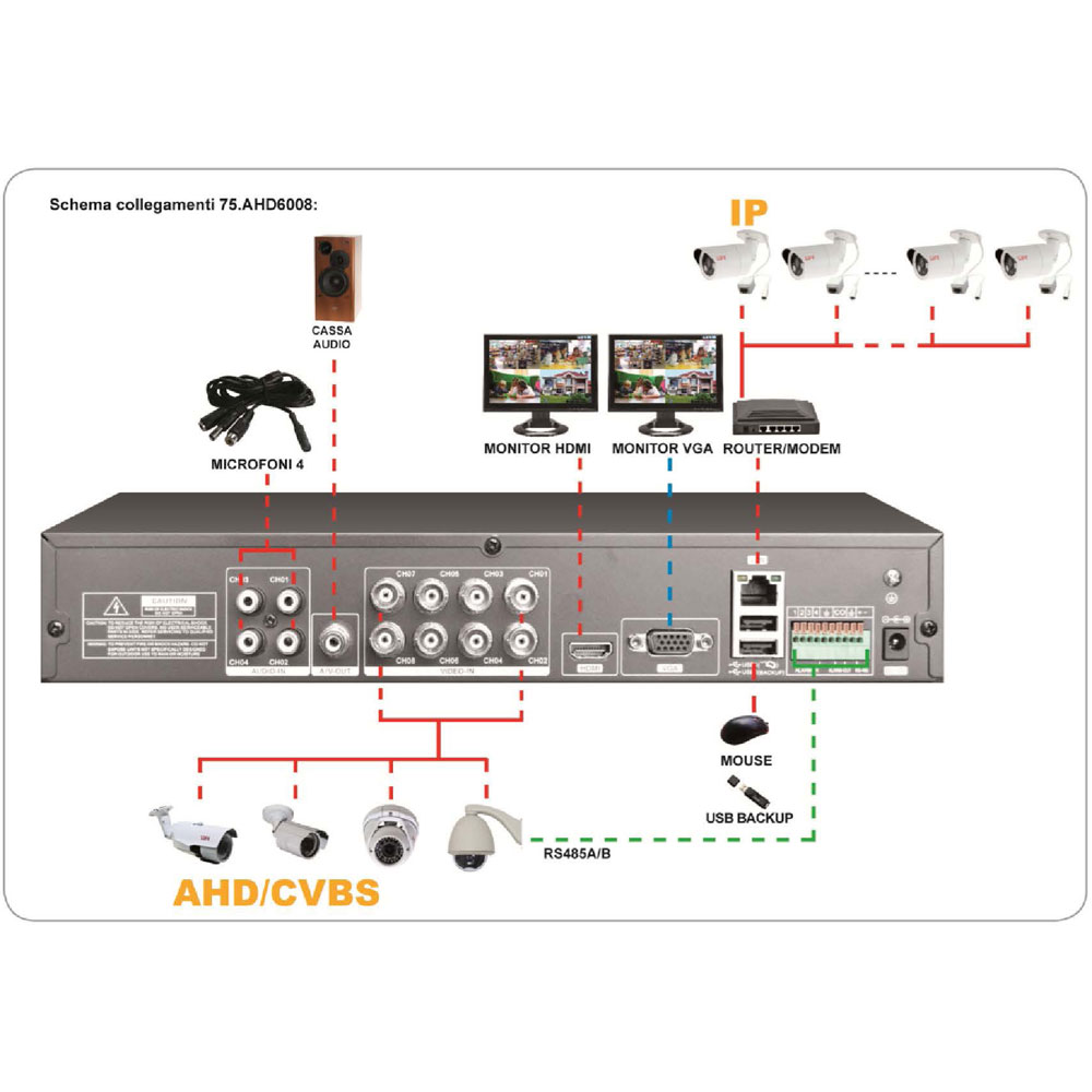 a 8 canali, possiamo utilizzare 8 telecamere miste in AHD, in analogico (CVBS) e IP, oppure 16 telecamere