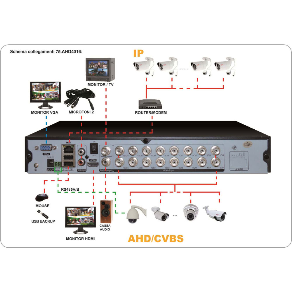 Videoregistratore digitale 16 canali con multi tecnologia AHD, CVBS (Analogico classico) e IP con