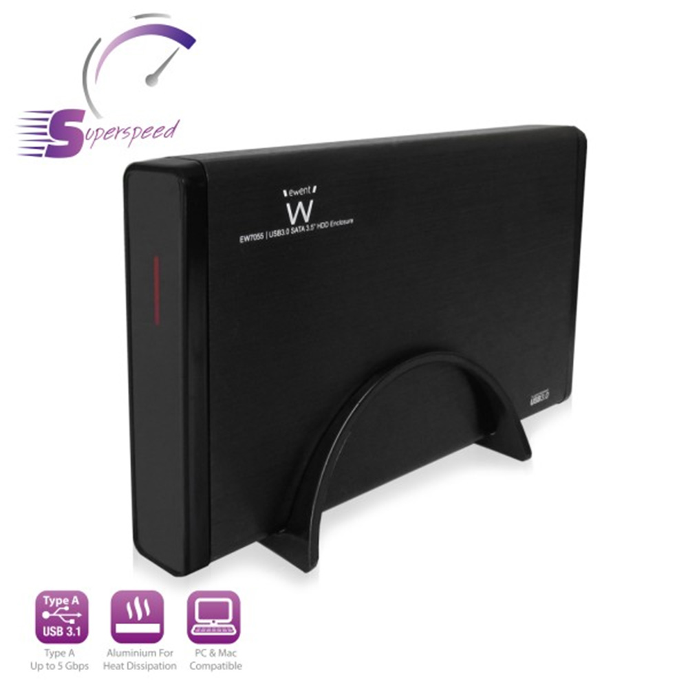 Conserva i tuoi file al fresco con il contenitore in alluminio Il tuo hard disk verrà mantenuto fresco nell\'EW7055 grazie all\'eccellente conduzione di calore del contenitore in alluminio. Il contenitore è adatto per un hard disk SATA da 3,5" ed è accompaganto da un supporto, un cavo USB 3.0 e dall\'alimentatore.