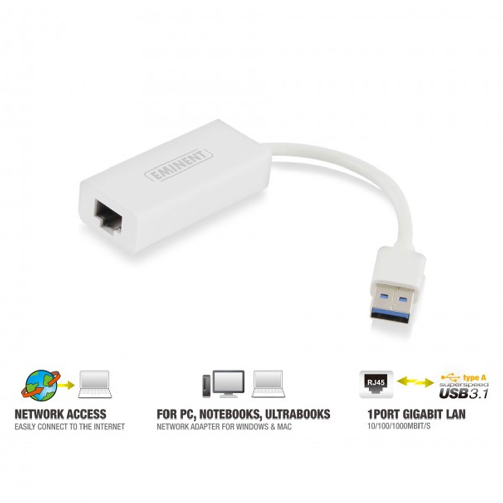 - EMINENT ADATTATORE RETE USB/RJ-45 USB 3.0 a ETHERNET 10/100/1000MBPS EM1017 R2