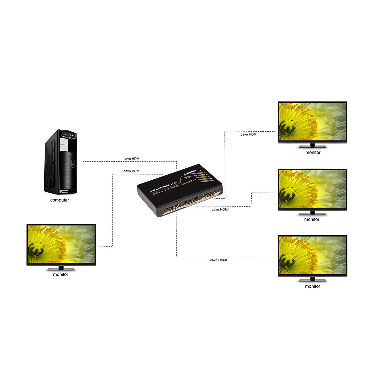 Splitter HDMI 1x4 con full 3D e 4K @ 30Hz (30MHz)