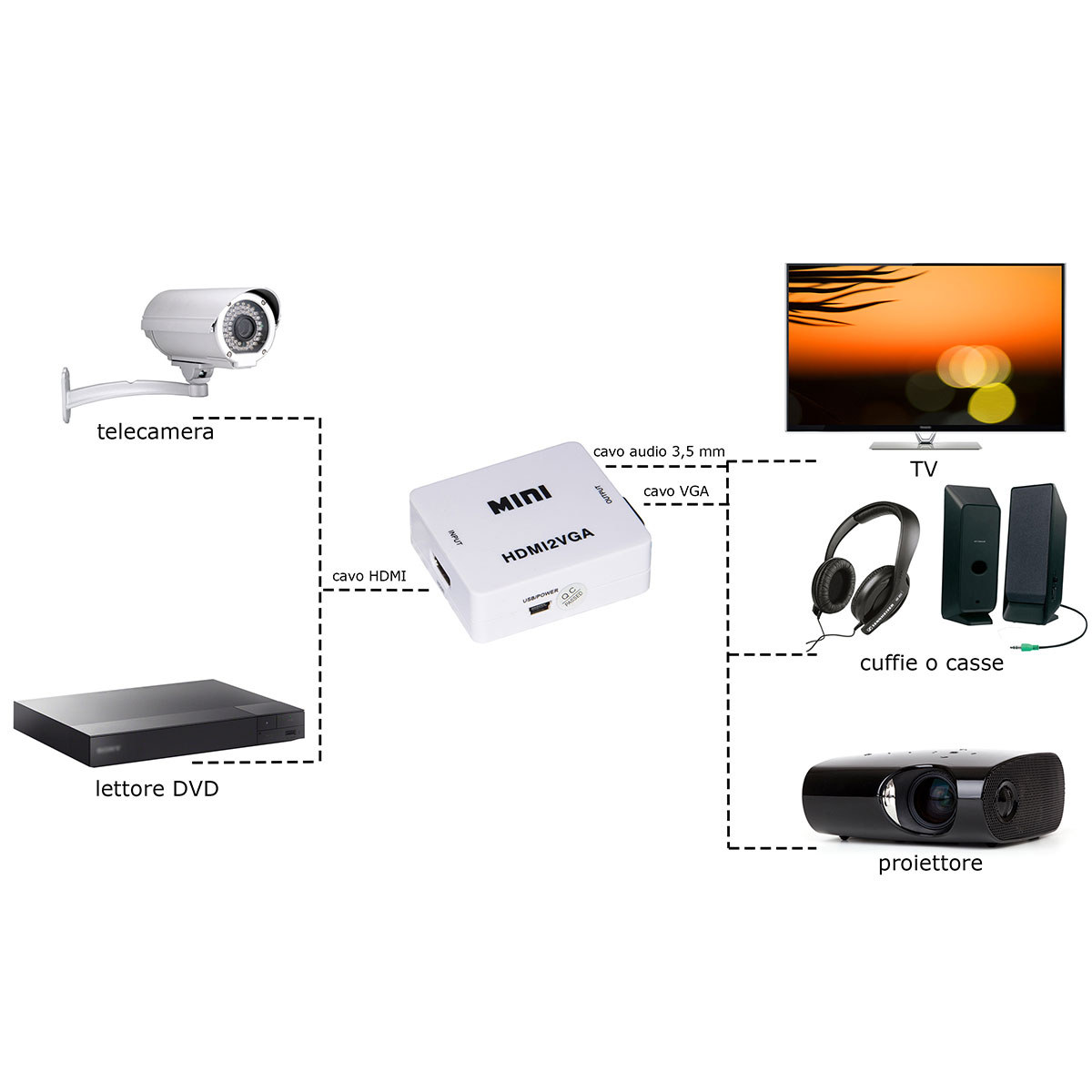 - ADATTATORE MINI CONVERTITORE VIDEO LINK HDMI - VGA PER 1 DISPOSITIVO HDMI CON VIDEO VGA