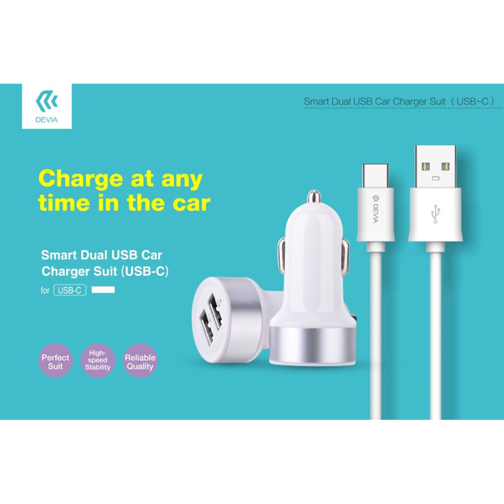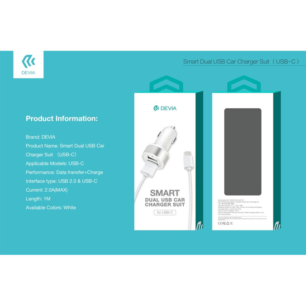 - KIT DEVIA DESCC991W CARICABATTERIE DA AUTO 2.0A + CAVO DATI 1MT "Type C" COLORE BIANCO