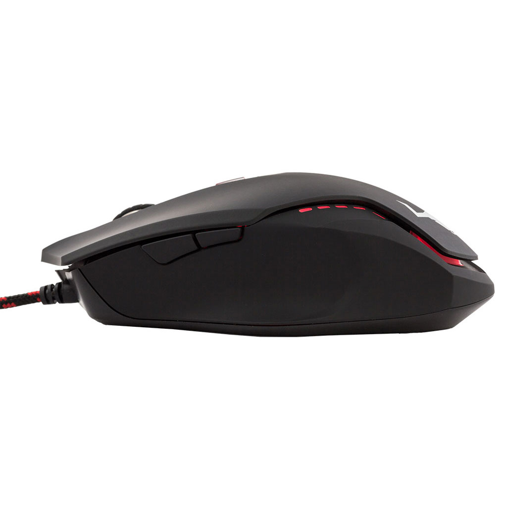 Dati Tecnici: Dimensione: 70 x 33 x 120 mm (LxHxP) Peso: 110 gr Layout: Destro Sensore: Ottico Regolazione DPI: 800/1200/1800/2400 DPI Velocità: 30 IPS Accelerazione: max. 8G Illuminazione: RGB Frequenza di polling: 500Hz Tasti: 6 (compleso scroll) Connessione: USB Lunghezza cavo: 1,6 m