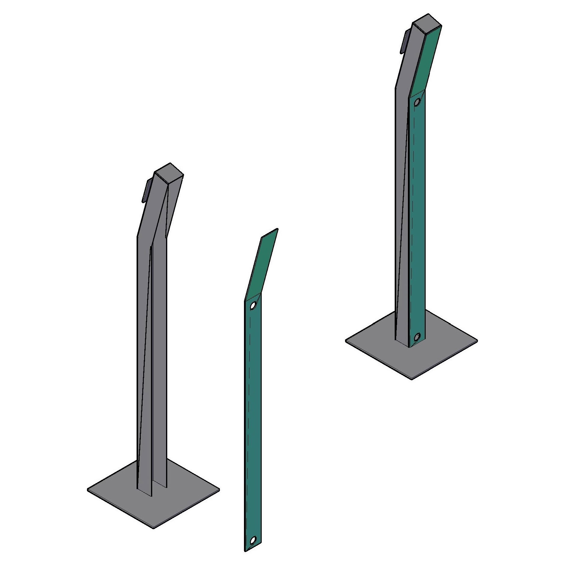 Totem in lamiera a U per poter alloggiare cavi, la parte dietro dello stesso è dotata di una lamiera asportabile. Base lamiera 5mm