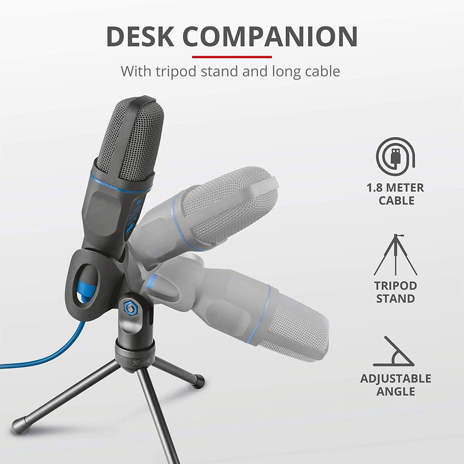 TRUST | Mico Microfono USB Microfono da tavolo ad alte prestazioni su supporto, stle studio registrazione.