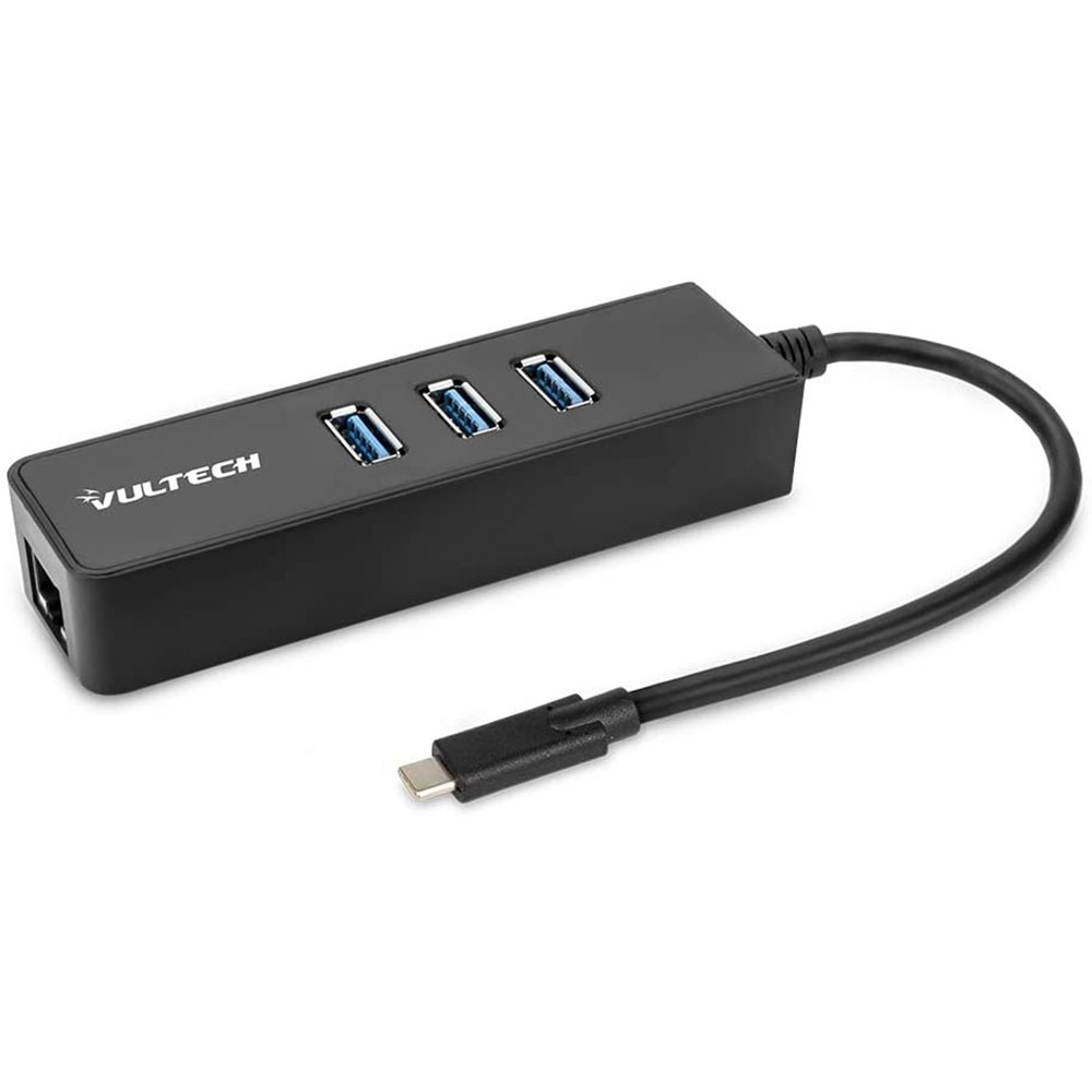 Adattatore per dispositivi con porta Type-C. Dotato di 3 porte USB 3.0 (velocità di trasferimento dati fino a 5 Gbps) e una porta RJ45 Gigabit Ethernet (velocità di trasferimento dati fino a 1000 Mbps). Indicato per notebook, PC desktop, smartphone e in generale tutti i dispositivi con porta Type-C.