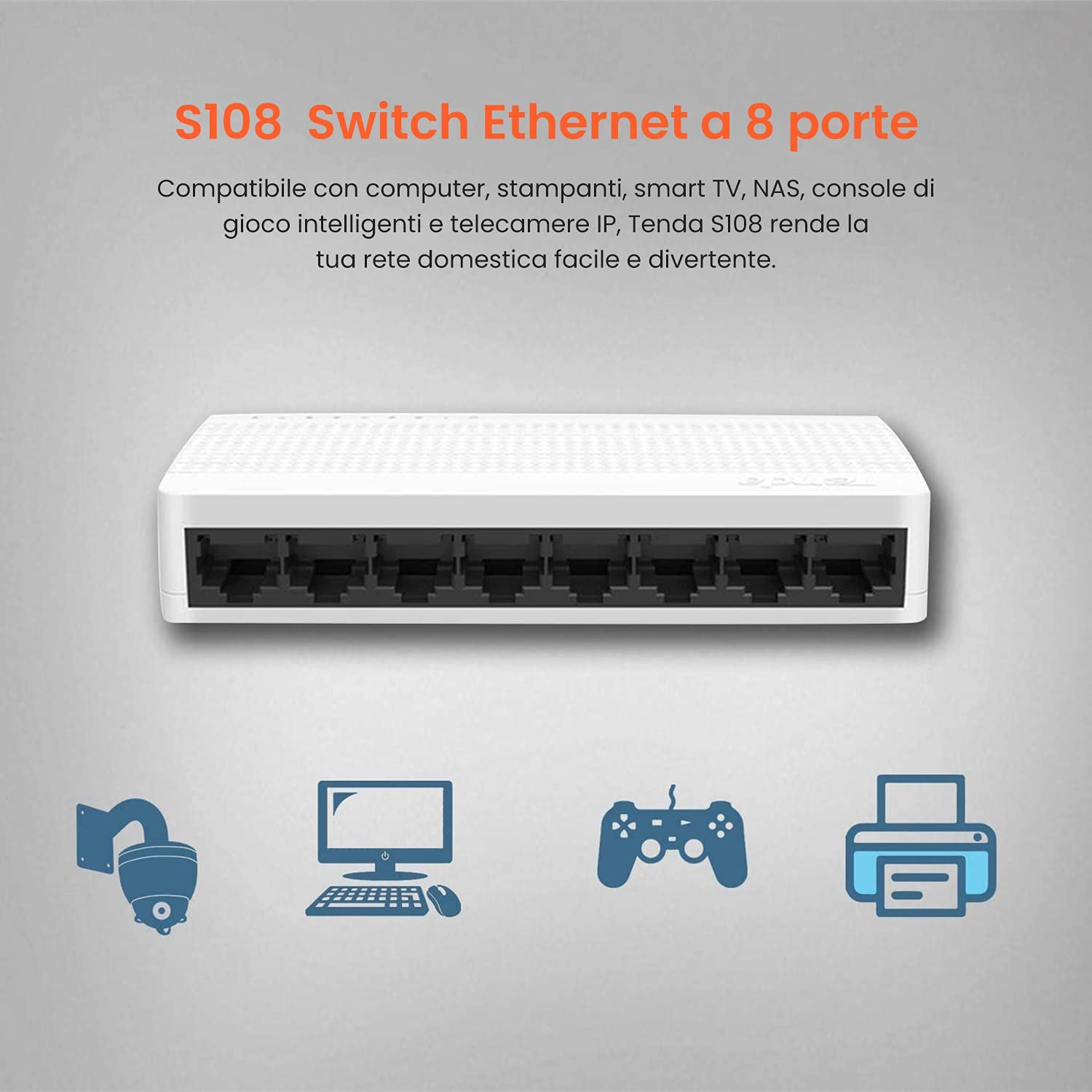 - SWITCH DESKTOP DI RETE TENDA 8-Port 10/100Mbps S108-MINI