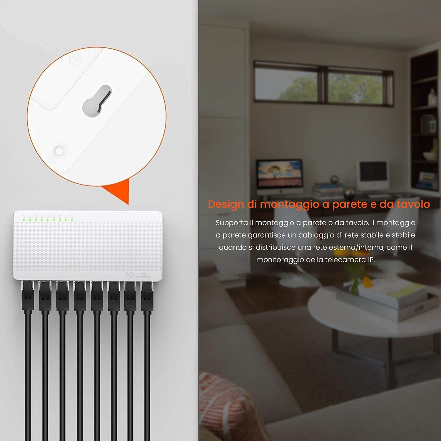 Lo Switch Ethernet Tenda a 8 porte S108 è uno switch desktop appositamente progettato per famiglie, uffici, dormitori, ecc. Le porte di negoziazione automatica 8 * 10/100 Mbps con velocità di trasmissione in full duplex fino a 200 Mbps offrono un accesso veloce a Internet. Il design plug-and-play facilita l'installazione in pochissimo tempo. Indipendentemente dal fatto che tu sia un appassionato di tecnologia o un utente principiante, l'S108 è semplicissimo e intuitivo da installare senza operazioni dispendiose in termini di tempo. Con un design ultra-compatto, l'S108 piò essere posizionato su desktop o con montaggio a parete, rendendo l'installazione abbastanza flessibile. Compatibile con computer, stampante, smart TV, NAS, console di gioco intelligente, telecamere IP, l'S108 consente di ottenere il massimo dalla tua rete domestica in modo facile e divertente.