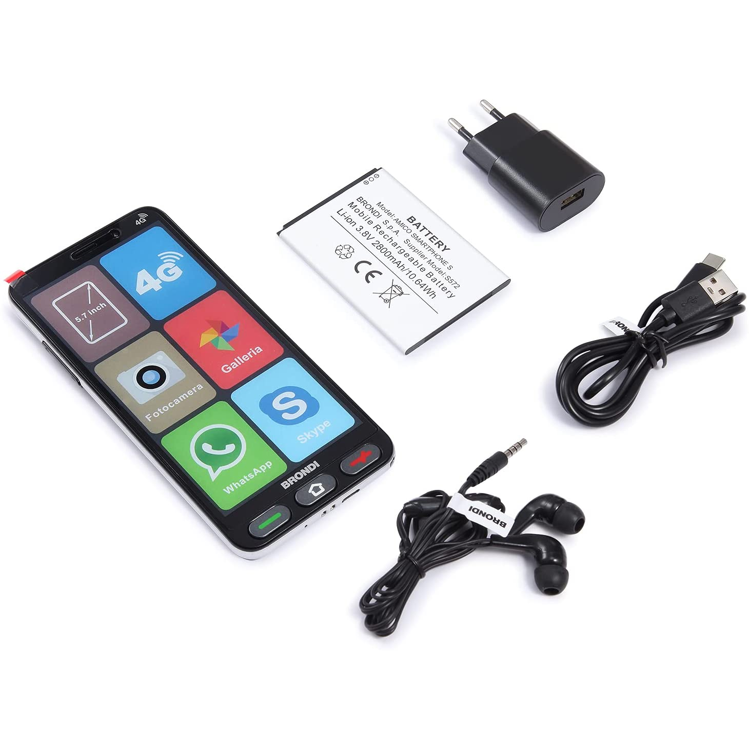- CELLULARE BRONDI AMICO SMARTPHONE S COLORE NERO 4G LCD 5.7" Doppia Fotocamera 5Mp+7Mp
