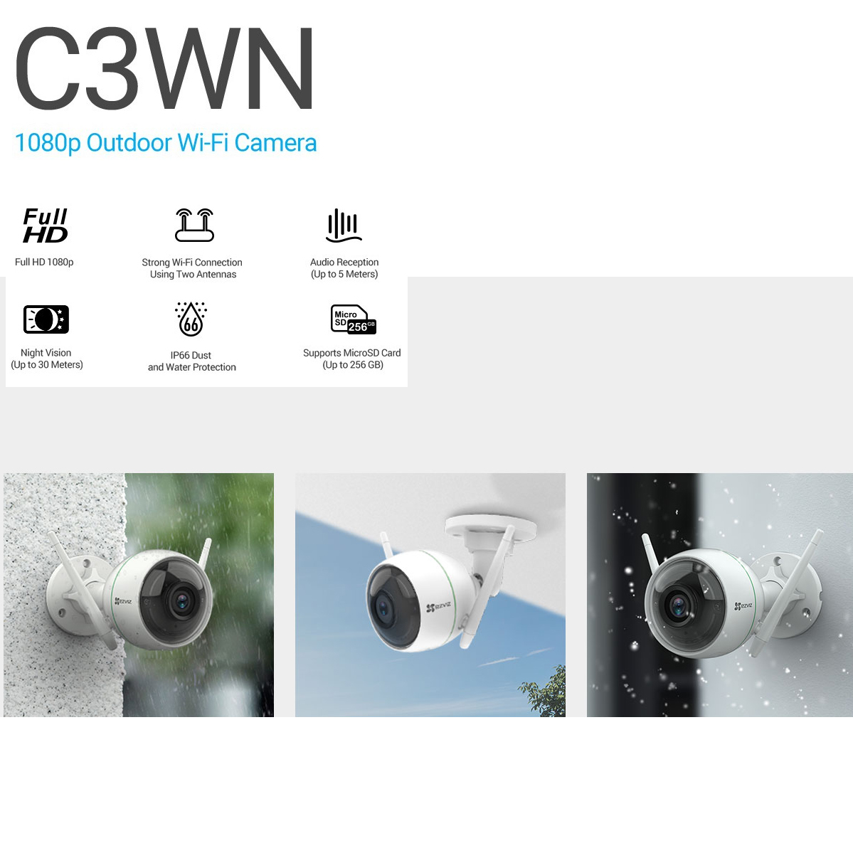 Telecamera Wi-Fi per esterno Grazie alla doppia antenna Wi-Fi, C3WN controlla la tua proprietà con una connessione stabile e affidabile. Connettività Migliorata C3WN è sempre online, grazie alla doppia antenna con tecnologie anti-interferenza a lunga portata. Ben equipaggiata per mantenere un segnale stabile e affidabile in ogni condizione. Ascolta quello che succede Con il suo microfono a cancellazione di rumore integrato, C3WN ti permette di sentire quello che succede con audio di alta qualità. Usa il tuo smartphone per sentire, ovunque tu sia. Visione notturna superiore Le potenti luci ad infrarossi di C3WN offrono una visione nitida anche al buio, sia nelle immagini che nei video, fino ad una distanza di 30 metri. In ogni condizione meteo Il grado di protezione IP66 significa che C3WN è in grado di resistere in ogni condizione meteo, sole, pioggia, neve, per proteggere instancabilmente le cose che ami. Multiple opzioni di archiviazione Conserva le tue registrazioni con soluzioni flessibili e sicure. C3WN è equipaggiata con uno slot per schede MicroSD da massimo 256GB. Oppure puoi salvare le tue immagini nel Cloud EZVIZ*. * Il servizio di archiviazione cloud è disponibile solo in alcuni mercati. Verifica la disponibilità prima di effettuare qualsiasi acquisto. Sicurezza a portata di mano Grazie all app EZVIZ e al software EZVIZ Studio puoi acquisire, salvare, proteggere e condividere ciò che ti sta più a cuore.