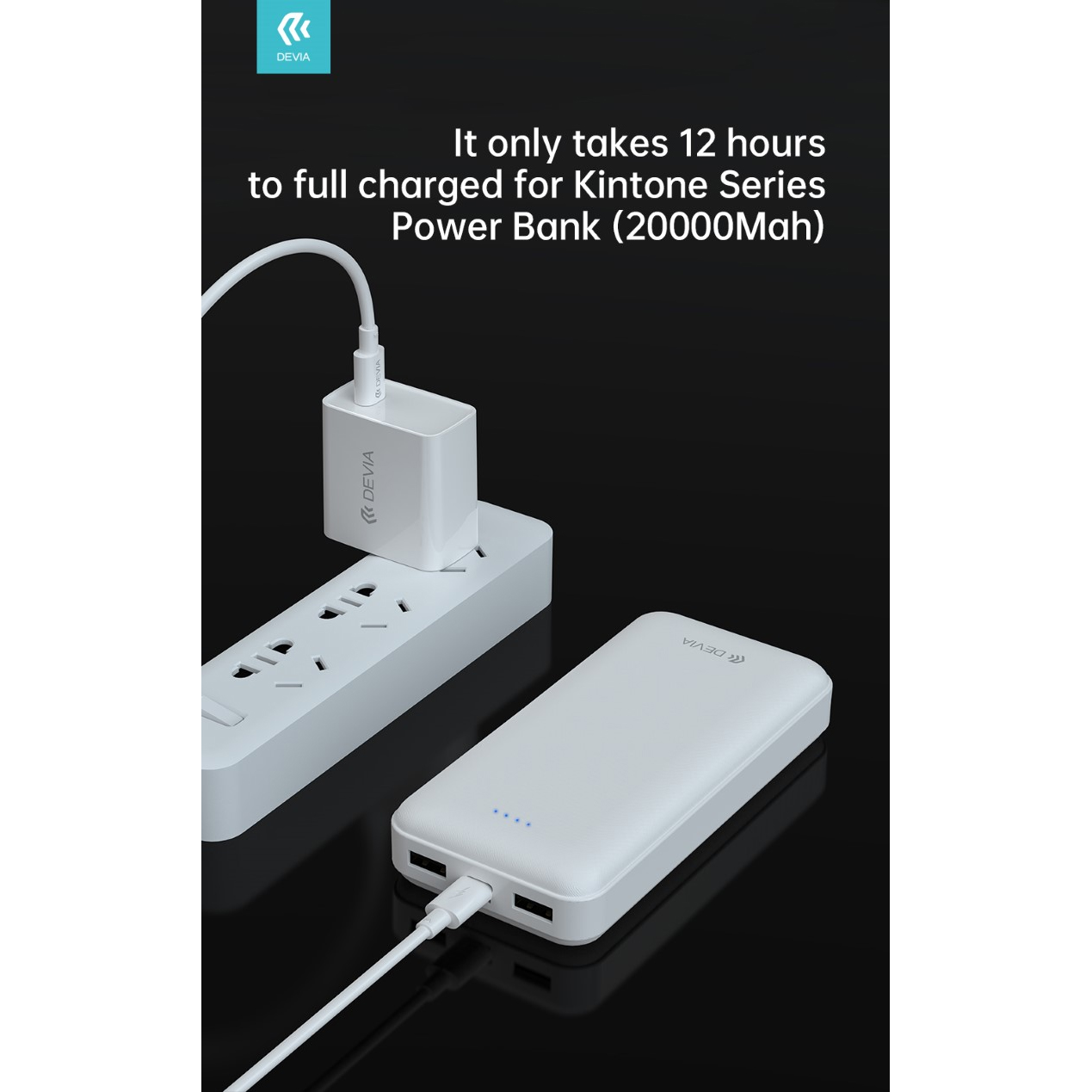- POWER BANK DEVIA KINTONE V2 20.000 mAh 2 USCITE USB 5V/2.1A COLORE BIANCO