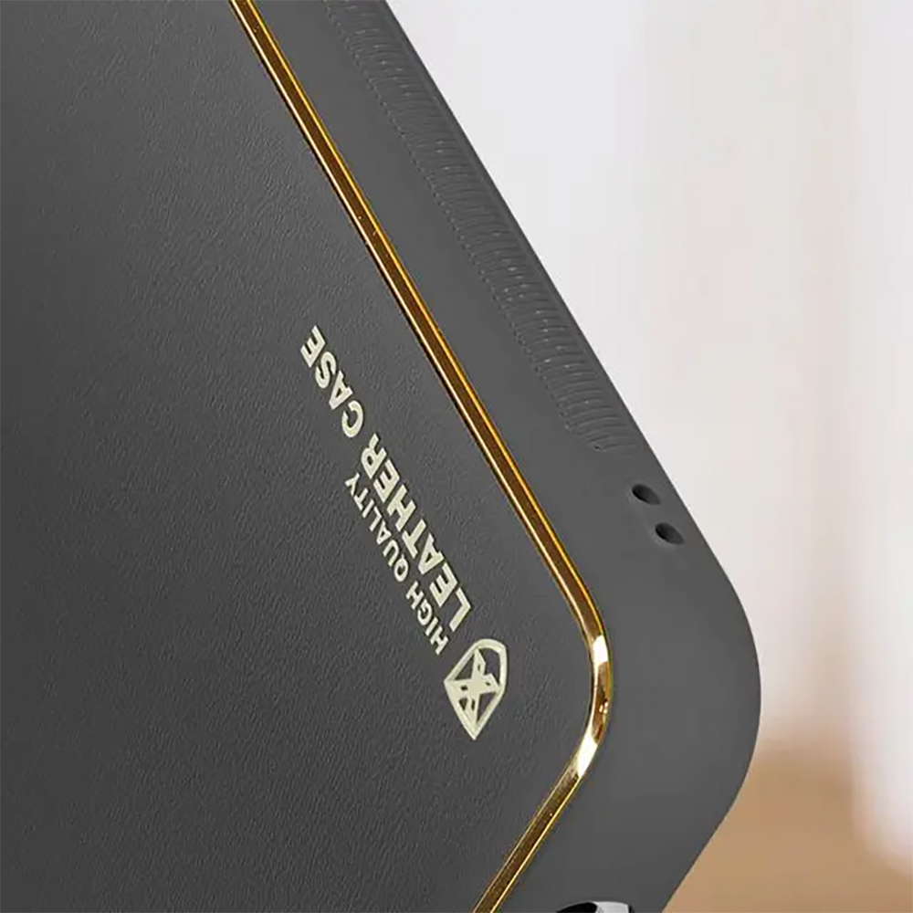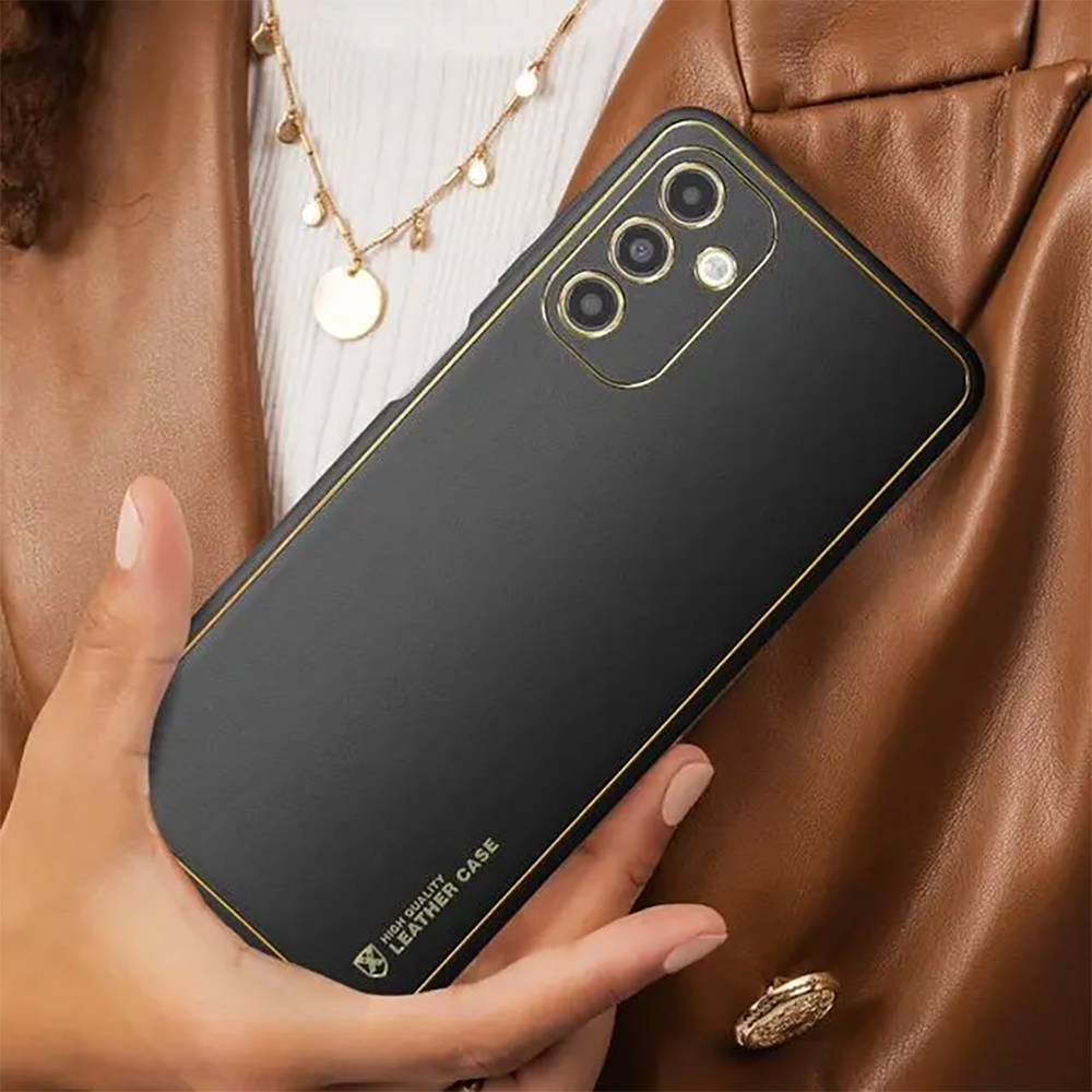 Custodia protettiva in PELLE realizzata in ecopelle di altissima qualità. Si adatta bene al telefono e i bordi leggermente arrotondati proteggono il dispositivo in caso di caduta. La parte principale della cover è un involucro flessibile in TPU, che è delicato sul telefono e previene i graffi sull'involucro. Il prossimo è un cappuccio rigido che rafforza l'alloggiamento flessibile. inoltre ricoperto da un rivestimento metallico che brilla come metallo lucido. L'ultimo strato è in pelle ecologica laccata. La custodia offre una vestibilità perfetta e dispone di tutti i ritagli necessari per le porte. La lavorazione perfetta garantisce la massima qualità e attira l'attenzione sulla finitura: un'elegante cornice dorata.