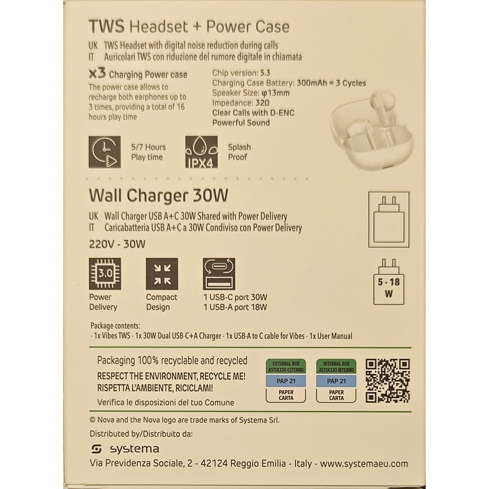 - BUNDLE KIT BASIC NOVA ALIMENTATORE 30W + NOVA AURICOLARE BLUETOOTH WHTE (NVIBESCH30WKITW)