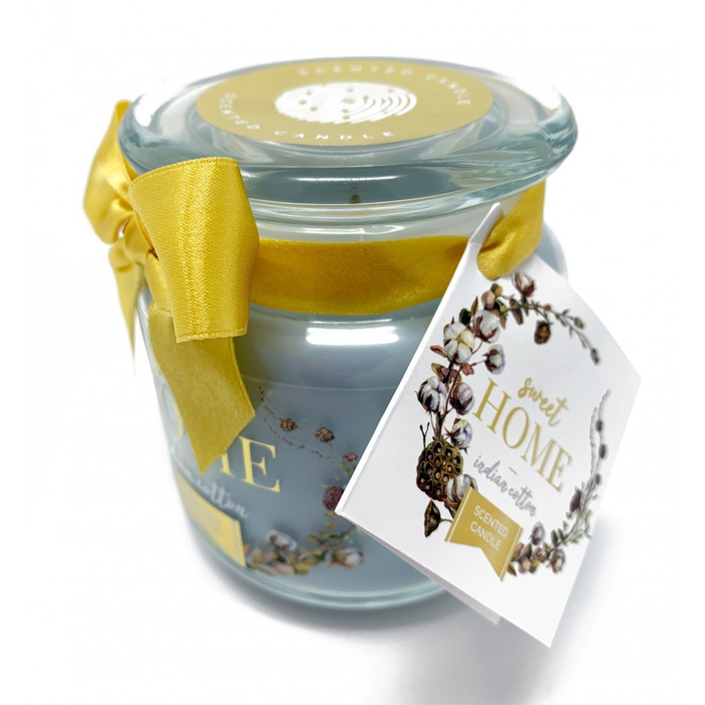 Elegante candela profumata in barattolo di vetro con coperchio salva-aroma di alta qualità dal design perfetto per qualunque casa pratica da usare - Modello: Giara in vetro Piccola con coperchio salva-aroma - Dimensioni: 10 x 11 cm - Peso: 00.85Kg (netto 400gr) - Profumazione: INDIAN COTTON (Cotone Indiano) - Tipo Stoppino: Cotone - Tipo Cera: Paraffina raffinata - Durata: 80h
