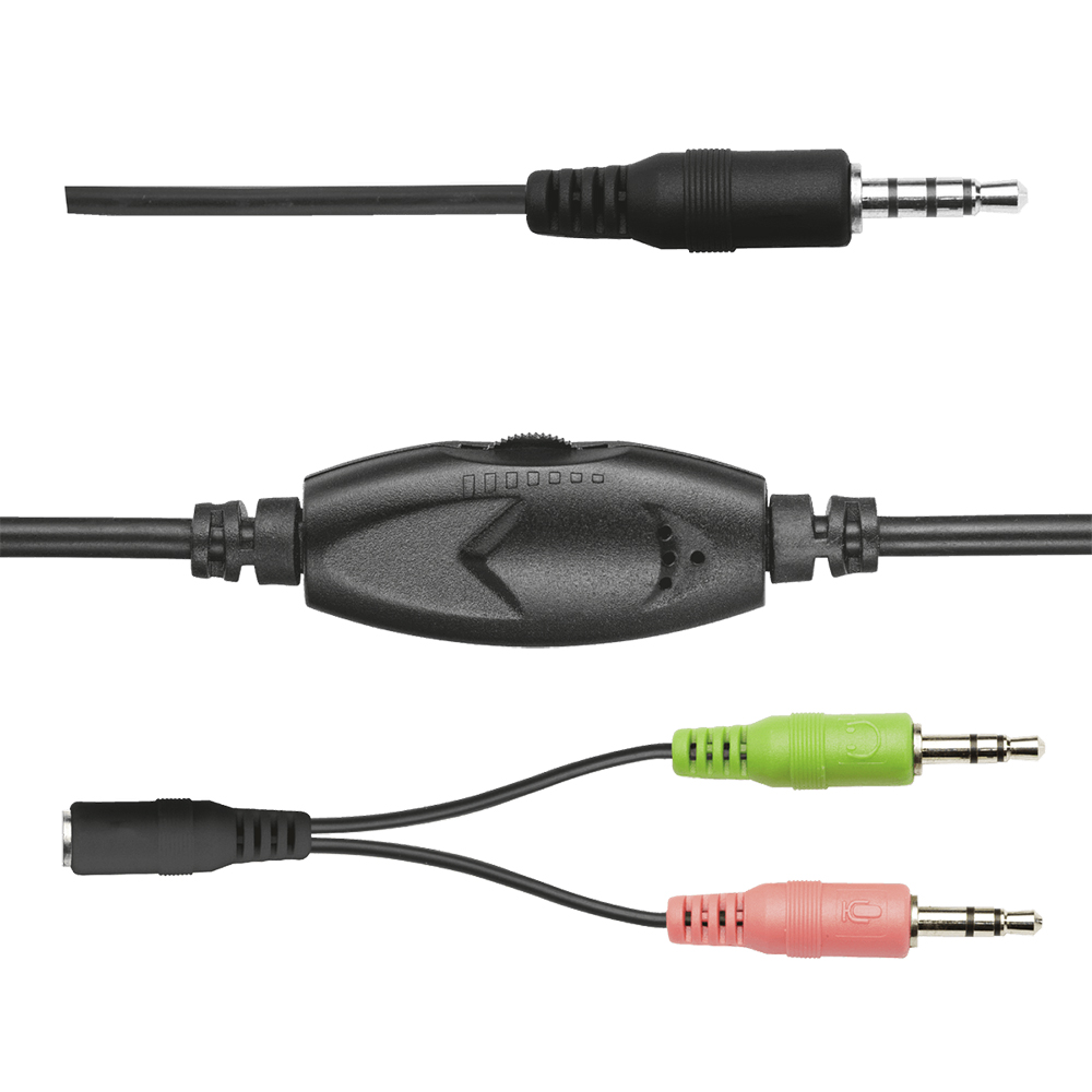Comode cuffie over-ear con controllo volume integrato e microfono regolabile Funziona con tutti i PC e i laptop Ideale per sessioni di gioco on-line, musica e applicazioni vocali in chat come Skype Design confortevole con archetto regolabile e soffici padiglioni auricolari effetto pelle Microfono ad alta sensibilità che garantisce una qualità nitida vocale Eccellente qualità del suono Controllo del volume integrato 1,8 metri di cavo Contenuto della confezione Cuffie Cavo adattatore Manuale utente Requisiti minimi Connettore cuffie da 3,5 mm Connettore microfono da 3,5 mm Connettore cuffia/microfono da 3,5 mm combinato