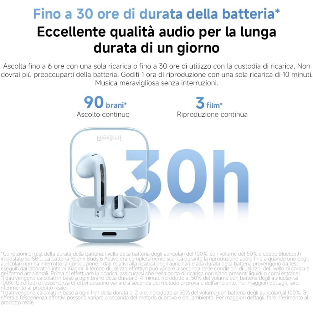 - AURICOLARI XIAOMI REDMI BUDS 6 ACTIVE BLUE TRUE WIRELESS STEREO (TWS) IN-EAR BLUETOOTH 5.4